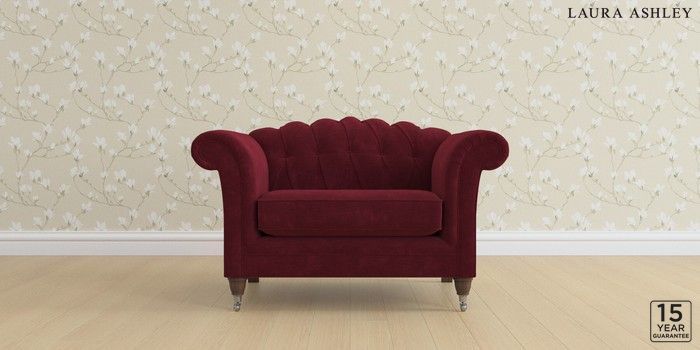 6.12.1 Buy Gloucester Button Back by Laura Ashley Snuggle Alwyn Velvet Burgundy Red Low Chrome Castor - Chestnut from the Laura Ashley online shop Click here to use our website with more accessibility support, for example screen readers