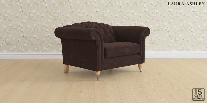 6.12.1 Buy Gloucester Button Back by Laura Ashley Snuggle Alwyn Velvet Chocolate Brown Low Chrome Castor - Light Oak from the Laura Ashley online shop Click here to use our website with more accessibility support, for example screen readers