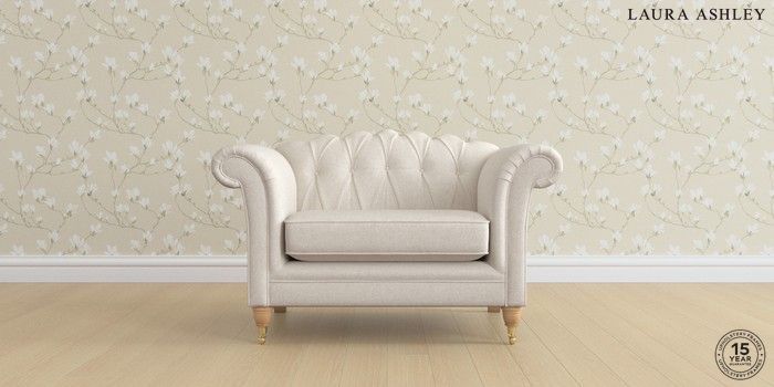 7.2.6 Buy Gloucester Button Back by Laura Ashley Snuggle Anneliese Oyster Natural Low Brass Castor - Light Oak from the Laura Ashley online shop Click here to use our website with more accessibility support, for example screen readers