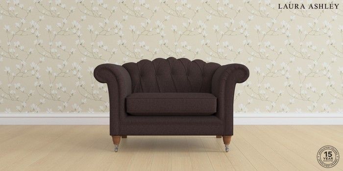 7.0.3 Buy Gloucester Button Back by Laura Ashley Snuggle Bainton Chocolate Brown Low Chrome Castor - Teak from the Laura Ashley online shop Click here to use our website with more accessibility support, for example screen readers