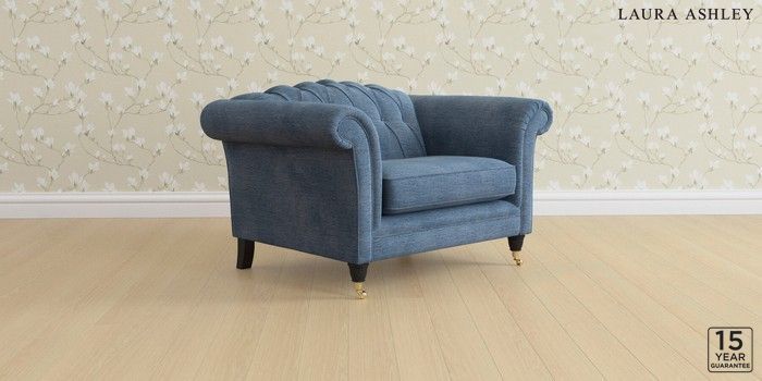 6.12.1 Buy Gloucester Button Back by Laura Ashley Snuggle Edwin Chenille Seaspray Blue Low Brass Castor - Black from the Laura Ashley online shop Click here to use our website with more accessibility support, for example screen readers