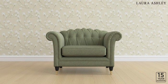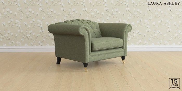 6.12.1 Buy Gloucester Button Back by Laura Ashley Snuggle Harley Moss Green Low Brass Castor - Black from the Laura Ashley online shop Click here to use our website with more accessibility support, for example screen readers