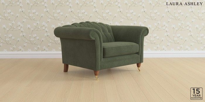 6.12.13 Buy Gloucester Button Back by Laura Ashley Snuggle Lundar Chenille Ivy Green Low Brass Castor - Teak from the Laura Ashley online shop Click here to use our website with more accessibility support, for example screen readers