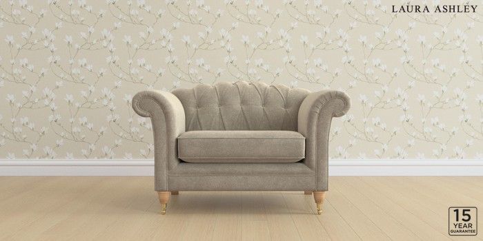 6.12.13 Buy Gloucester Button Back by Laura Ashley Snuggle Lundar Chenille Truffle Natural Low Brass Castor - Light Oak from the Laura Ashley online shop Click here to use our website with more accessibility support, for example screen readers