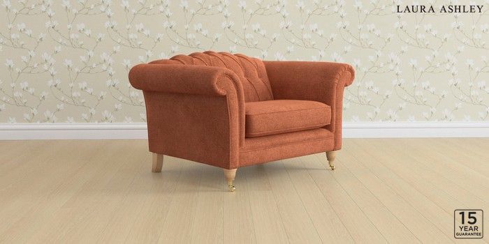 6.12.1 Buy Gloucester Button Back by Laura Ashley Snuggle Nantmor Rust Orange Low Brass Castor - Light Oak from the Laura Ashley online shop Click here to use our website with more accessibility support, for example screen readers