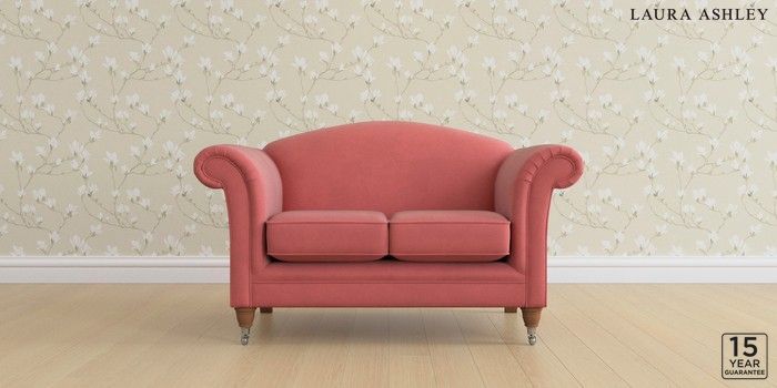 6.12.1 Buy Gloucester by Laura Ashley 2 Seater Small Sofa Ailsworth Old Rose Pink Low Chrome Castor - Teak from the Laura Ashley online shop Click here to use our website with more accessibility support, for example screen readers