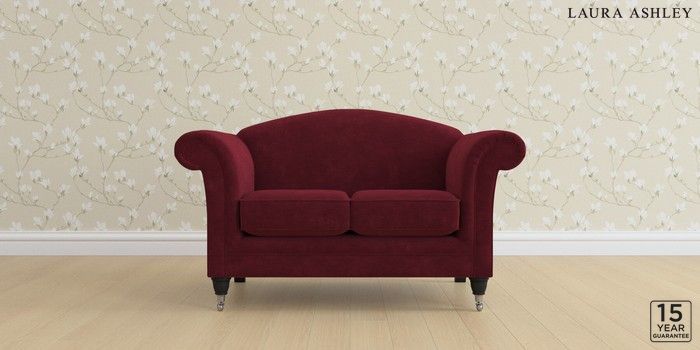 6.12.1 Buy Gloucester by Laura Ashley 2 Seater Small Sofa Alwyn Velvet Burgundy Red Low Chrome Castor - Black from the Laura Ashley online shop Click here to use our website with more accessibility support, for example screen readers