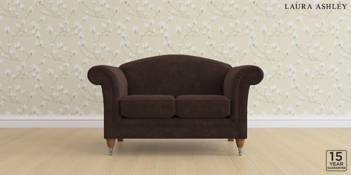 6.12.1 Buy Gloucester by Laura Ashley 2 Seater Small Sofa Alwyn Velvet Chocolate Brown Low Chrome Castor - Teak from the Laura Ashley online shop Click here to use our website with more accessibility support, for example screen readers