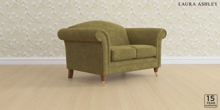 6.12.1 Buy Gloucester by Laura Ashley 2 Seater Small Sofa Alwyn Velvet Olive Green Low Brass Castor - Teak from the Laura Ashley online shop Click here to use our website with more accessibility support, for example screen readers