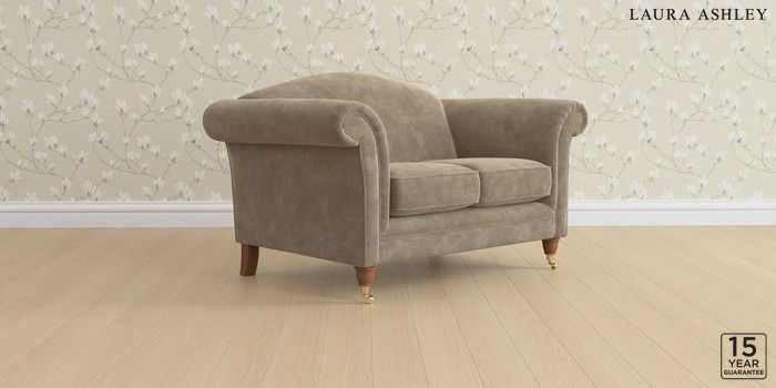 6.12.1 Buy Gloucester by Laura Ashley 2 Seater Small Sofa Alwyn Velvet Truffle Natural Low Brass Castor - Teak from the Laura Ashley online shop Click here to use our website with more accessibility support, for example screen readers