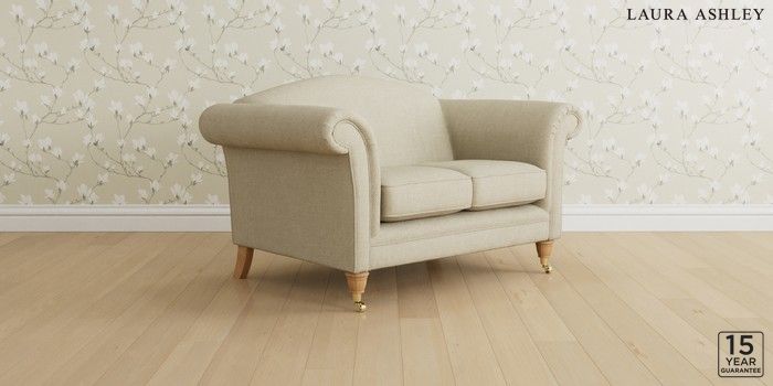 6.12.1 Buy Gloucester by Laura Ashley 2 Seater Small Sofa Anneliese Natural Low Brass Castor - Light Oak from the Laura Ashley online shop Click here to use our website with more accessibility support, for example screen readers