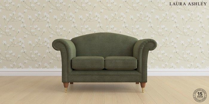 6.12.1 Buy Gloucester by Laura Ashley 2 Seater Small Sofa Edwin Chenille Hedgerow Green Low Brass Castor - Teak from the Laura Ashley online shop Click here to use our website with more accessibility support, for example screen readers