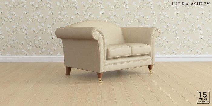 6.12.1 Buy Gloucester by Laura Ashley 2 Seater Small Sofa Edwin Herringbone Natural Low Brass Castor - Teak from the Laura Ashley online shop Click here to use our website with more accessibility support, for example screen readers
