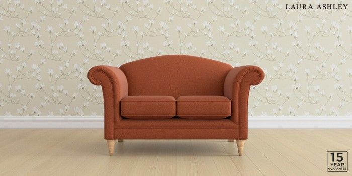 6.12.13 Buy Gloucester by Laura Ashley 2 Seater Small Sofa Harley Terracotta Orange Low Turned - Light Oak from the Laura Ashley online shop Click here to use our website with more accessibility support, for example screen readers