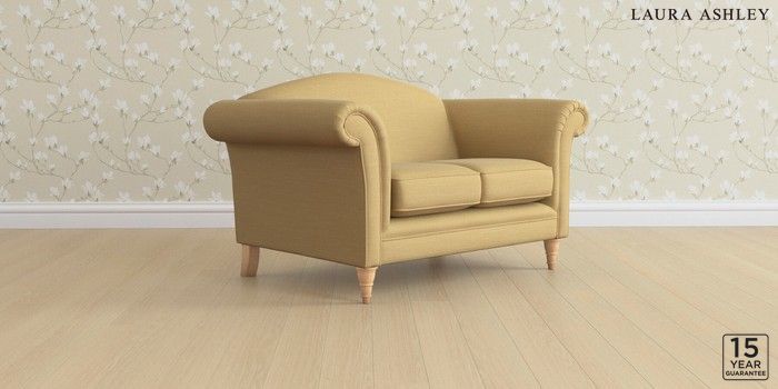 6.12.13 Buy Gloucester by Laura Ashley 2 Seater Small Sofa Kinsham Ochre Yellow Low Turned - Light Oak from the Laura Ashley online shop Click here to use our website with more accessibility support, for example screen readers