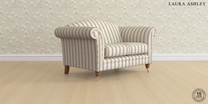 6.12.1 Buy Gloucester by Laura Ashley 2 Seater Small Sofa Kinsham Stripe Seaspray Blue Low Brass Castor - Teak from the Laura Ashley online shop Click here to use our website with more accessibility support, for example screen readers