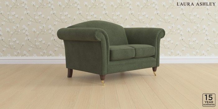6.12.1 Buy Gloucester by Laura Ashley 2 Seater Small Sofa Lundar Chenille Ivy Green Low Brass Castor - Chestnut from the Laura Ashley online shop Click here to use our website with more accessibility support, for example screen readers