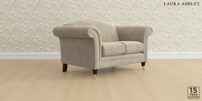 6.12.1 Buy Gloucester by Laura Ashley 2 Seater Small Sofa Lundar Chenille Truffle Natural Low Brass Castor - Black from the Laura Ashley online shop Click here to use our website with more accessibility support, for example screen readers
