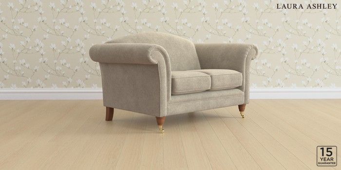 6.12.1 Buy Gloucester by Laura Ashley 2 Seater Small Sofa Lundar Chenille Truffle Natural Low Brass Castor - Teak from the Laura Ashley online shop Click here to use our website with more accessibility support, for example screen readers