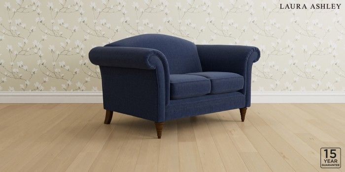 6.12.13 Buy Gloucester by Laura Ashley 2 Seater Small Sofa Nantmor Midnight Navy Low Turned - Teak from the Laura Ashley online shop Click here to use our website with more accessibility support, for example screen readers