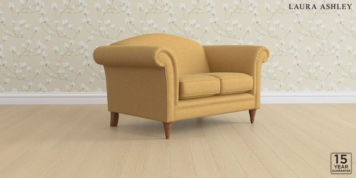 6.12.13 Buy Gloucester by Laura Ashley 2 Seater Small Sofa Peyton Ochre Yellow Low Turned - Teak from the Laura Ashley online shop Click here to use our website with more accessibility support, for example screen readers