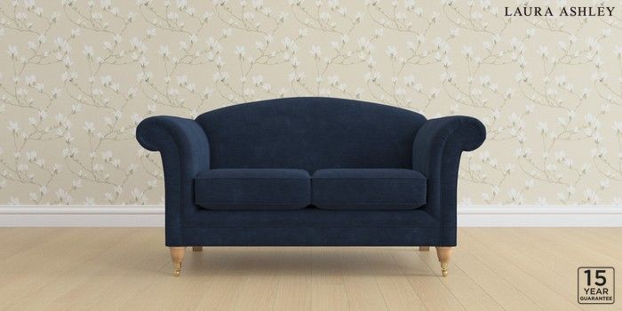 6.12.13 Buy Gloucester by Laura Ashley 2 Seater Sofa Alwyn Velvet Midnight Navy Low Brass Castor - Light Oak from the Laura Ashley online shop Click here to use our website with more accessibility support, for example screen readers