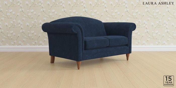 6.12.1 Buy Gloucester by Laura Ashley 2 Seater Sofa Alwyn Velvet Midnight Navy Low Turned - Teak from the Laura Ashley online shop Click here to use our website with more accessibility support, for example screen readers