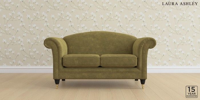 6.12.13 Buy Gloucester by Laura Ashley 2 Seater Sofa Alwyn Velvet Olive Green Low Brass Castor - Black from the Laura Ashley online shop Click here to use our website with more accessibility support, for example screen readers