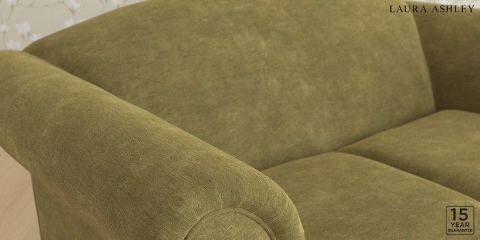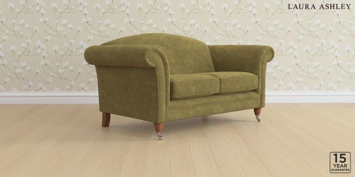 7.0.3 Buy Gloucester by Laura Ashley 2 Seater Sofa Alwyn Velvet Olive Green Low Chrome Castor - Teak from the Laura Ashley online shop Click here to use our website with more accessibility support, for example screen readers