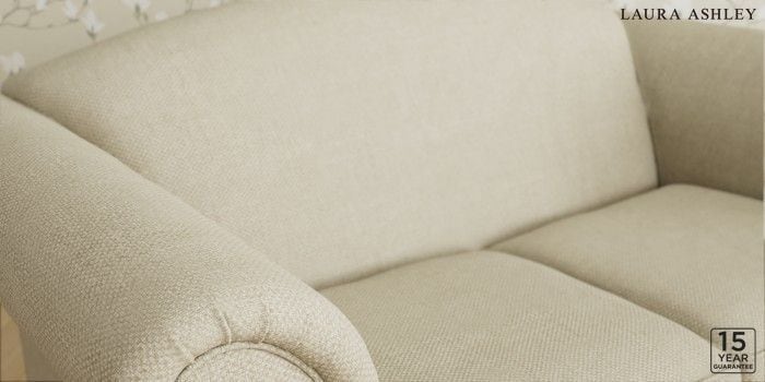 6.12.1 Buy Gloucester by Laura Ashley 2 Seater Sofa Anneliese Natural Low Brass Castor - Light Oak from the Laura Ashley online shop Click here to use our website with more accessibility support, for example screen readers