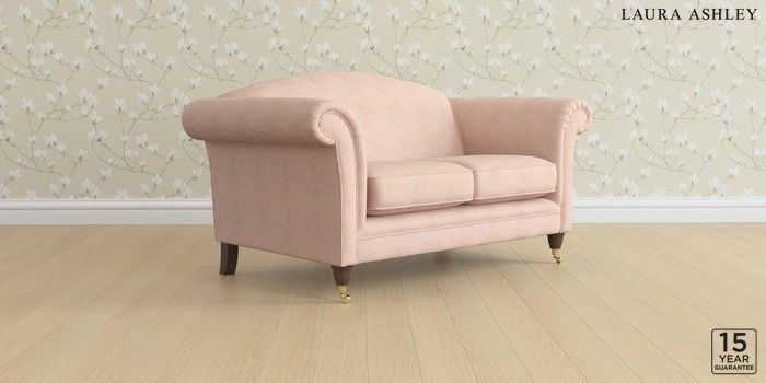 6.12.1 Buy Gloucester by Laura Ashley 2 Seater Sofa Edwin Chenille Blush Pink Low Brass Castor - Chestnut from the Laura Ashley online shop Click here to use our website with more accessibility support, for example screen readers