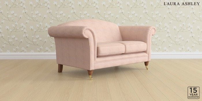 6.12.1 Buy Gloucester by Laura Ashley 2 Seater Sofa Edwin Chenille Blush Pink Low Brass Castor - Teak from the Laura Ashley online shop Click here to use our website with more accessibility support, for example screen readers