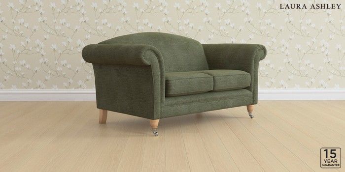6.12.13 Buy Gloucester by Laura Ashley 2 Seater Sofa Edwin Chenille Hedgerow Green Low Chrome Castor - Light Oak from the Laura Ashley online shop Click here to use our website with more accessibility support, for example screen readers