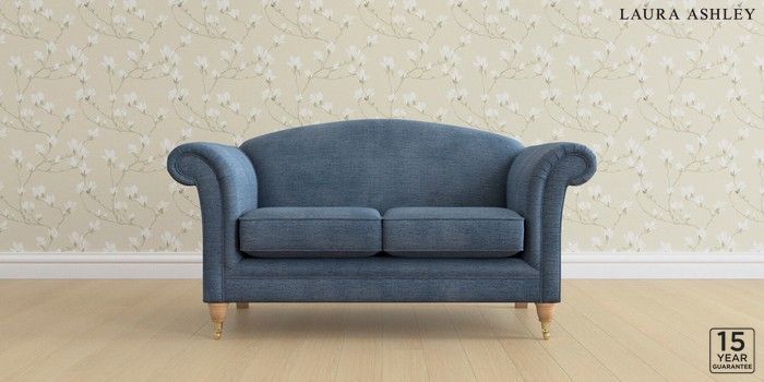 6.12.13 Buy Gloucester by Laura Ashley 2 Seater Sofa Edwin Chenille Seaspray Blue Low Brass Castor - Light Oak from the Laura Ashley online shop Click here to use our website with more accessibility support, for example screen readers