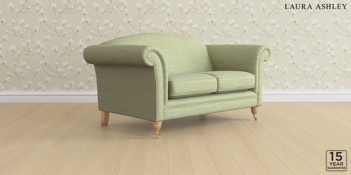 6.12.1 Buy Gloucester by Laura Ashley 2 Seater Sofa Kinsham Hedgerow Green Low Brass Castor - Light Oak from the Laura Ashley online shop Click here to use our website with more accessibility support, for example screen readers