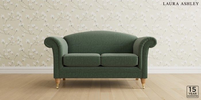 6.12.1 Buy Gloucester by Laura Ashley 2 Seater Sofa Nantmor Fern Green Low Brass Castor - Light Oak from the Laura Ashley online shop Click here to use our website with more accessibility support, for example screen readers