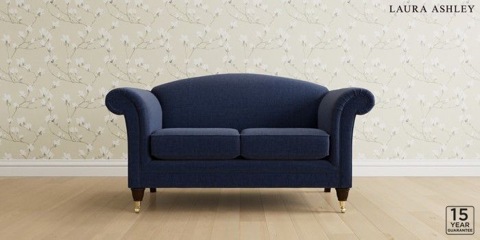 6.12.13 Buy Gloucester by Laura Ashley 2 Seater Sofa Nantmor Midnight Navy Low Brass Castor - Chestnut from the Laura Ashley online shop Click here to use our website with more accessibility support, for example screen readers