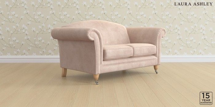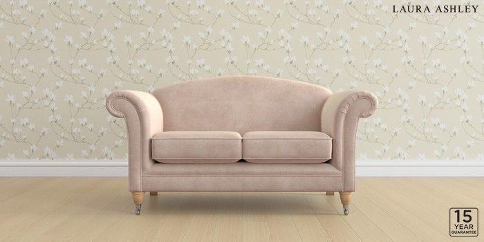 6.12.13 Buy Gloucester by Laura Ashley 2 Seater Sofa Orla Chalk Pink Low Chrome Castor - Light Oak from the Laura Ashley online shop Click here to use our website with more accessibility support, for example screen readers