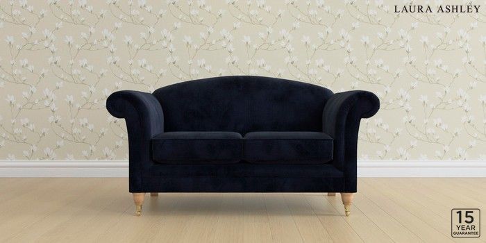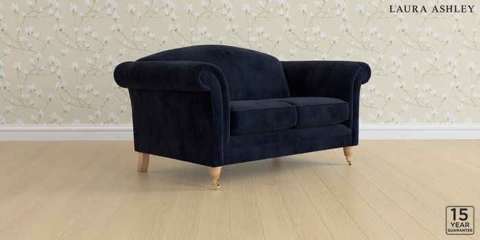 6.12.1 Buy Gloucester by Laura Ashley 2 Seater Sofa Orla Midnight Navy Low Brass Castor - Light Oak from the Laura Ashley online shop Click here to use our website with more accessibility support, for example screen readers