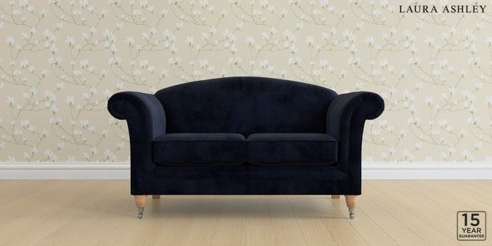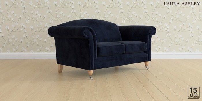 6.12.13 Buy Gloucester by Laura Ashley 2 Seater Sofa Orla Midnight Navy Low Chrome Castor - Light Oak from the Laura Ashley online shop Click here to use our website with more accessibility support, for example screen readers