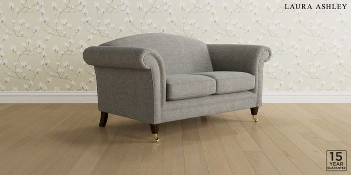 6.12.1 Buy Gloucester by Laura Ashley 2 Seater Sofa Orla Pale Steel Grey Low Brass Castor - Chestnut from the Laura Ashley online shop Click here to use our website with more accessibility support, for example screen readers