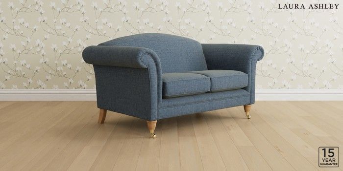 6.12.1 Buy Gloucester by Laura Ashley 2 Seater Sofa Orla Seaspray Blue Low Brass Castor - Light Oak from the Laura Ashley online shop Click here to use our website with more accessibility support, for example screen readers