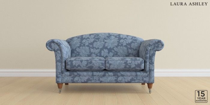 6.12.1 Buy Gloucester by Laura Ashley 2 Seater Sofa Tamara Dusky Seaspray Blue Low Chrome Castor - Teak from the Laura Ashley online shop Click here to use our website with more accessibility support, for example screen readers