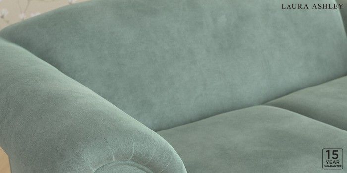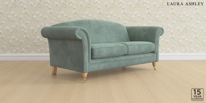 6.12.13 Buy Gloucester by Laura Ashley 3 Seater Small Sofa Ailsworth Fern Green Low Brass Castor - Light Oak from the Laura Ashley online shop Click here to use our website with more accessibility support, for example screen readers