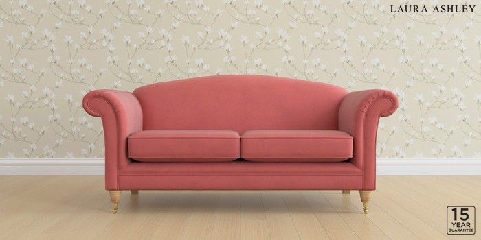 6.12.1 Buy Gloucester by Laura Ashley 3 Seater Small Sofa Ailsworth Old Rose Pink Low Brass Castor - Light Oak from the Laura Ashley online shop Click here to use our website with more accessibility support, for example screen readers