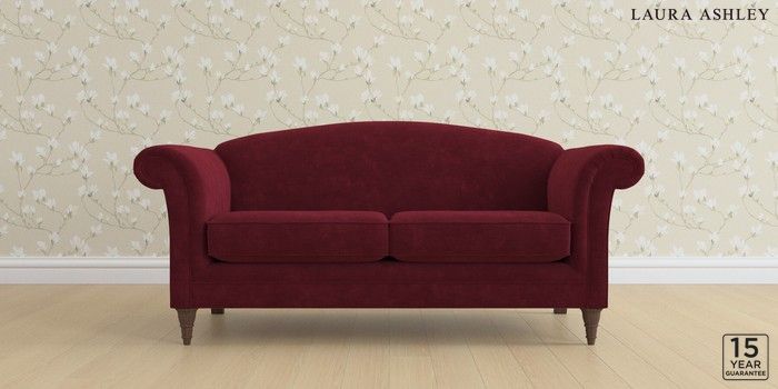 6.12.1 Buy Gloucester by Laura Ashley 3 Seater Small Sofa Alwyn Velvet Burgundy Red Low Turned - Chestnut from the Laura Ashley online shop Click here to use our website with more accessibility support, for example screen readers