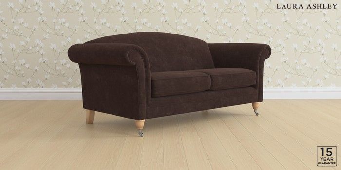 6.12.1 Buy Gloucester by Laura Ashley 3 Seater Small Sofa Alwyn Velvet Chocolate Brown Low Chrome Castor - Light Oak from the Laura Ashley online shop Click here to use our website with more accessibility support, for example screen readers