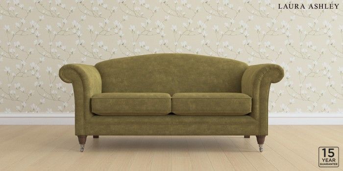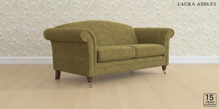 6.12.1 Buy Gloucester by Laura Ashley 3 Seater Small Sofa Alwyn Velvet Olive Green Low Chrome Castor - Chestnut from the Laura Ashley online shop Click here to use our website with more accessibility support, for example screen readers
