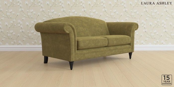7.0.3 Buy Gloucester by Laura Ashley 3 Seater Small Sofa Alwyn Velvet Olive Green Low Turned - Black from the Laura Ashley online shop Click here to use our website with more accessibility support, for example screen readers