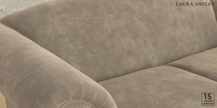 6.12.1 Buy Gloucester by Laura Ashley 3 Seater Small Sofa Alwyn Velvet Truffle Natural Low Brass Castor - Chestnut from the Laura Ashley online shop Click here to use our website with more accessibility support, for example screen readers